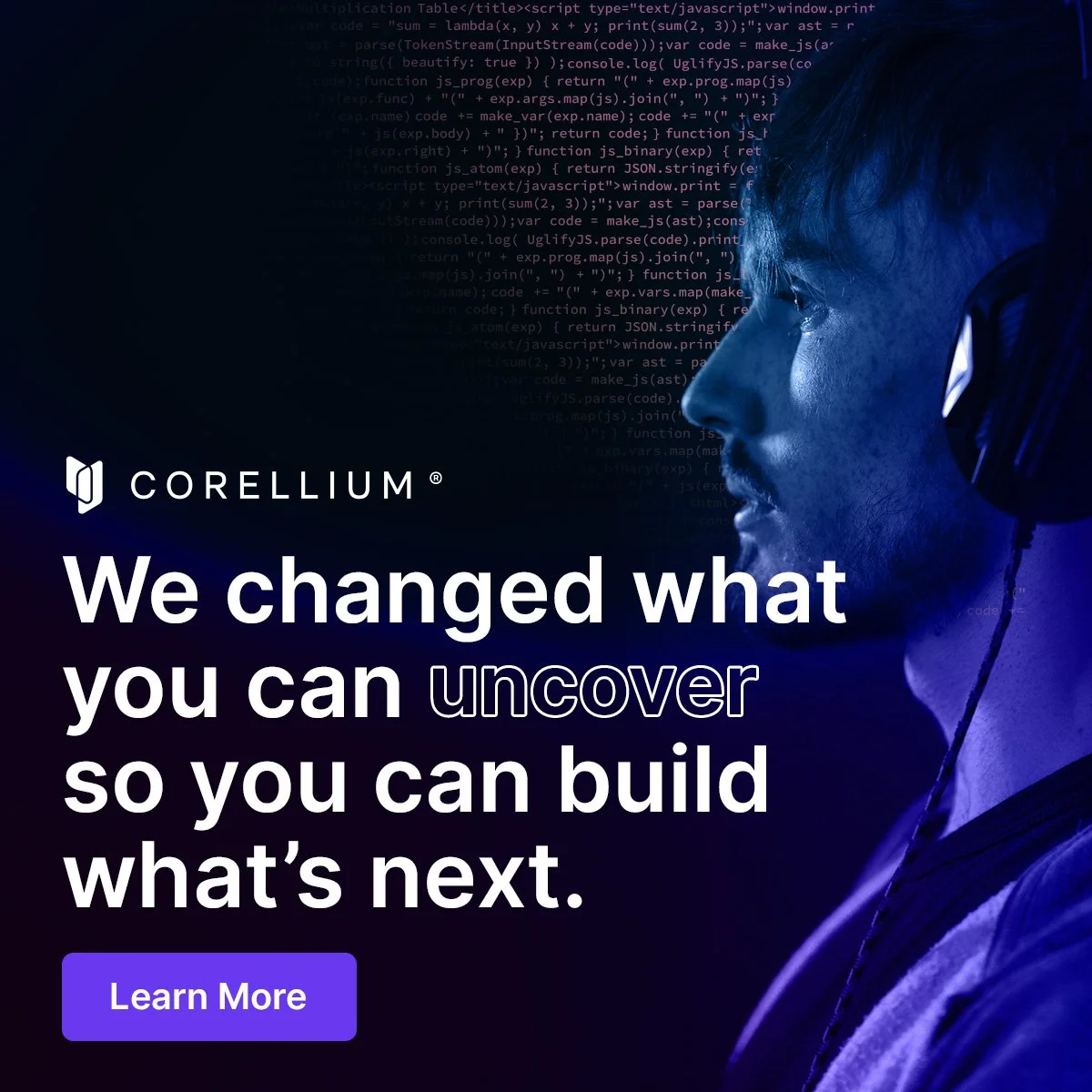Corellium provides never-before-possible security vulnerability research and app testing for iOS and Android phones. They approached Beacon Digital Marketing to devise an overall brand campaign that targeted an audience of mobile security personnel and developers. Our ideations include bold imagery, headlines infused with source code, and a message that strongly conveys what Corellium offers: a vulnerability-free place to build the next greatest app.